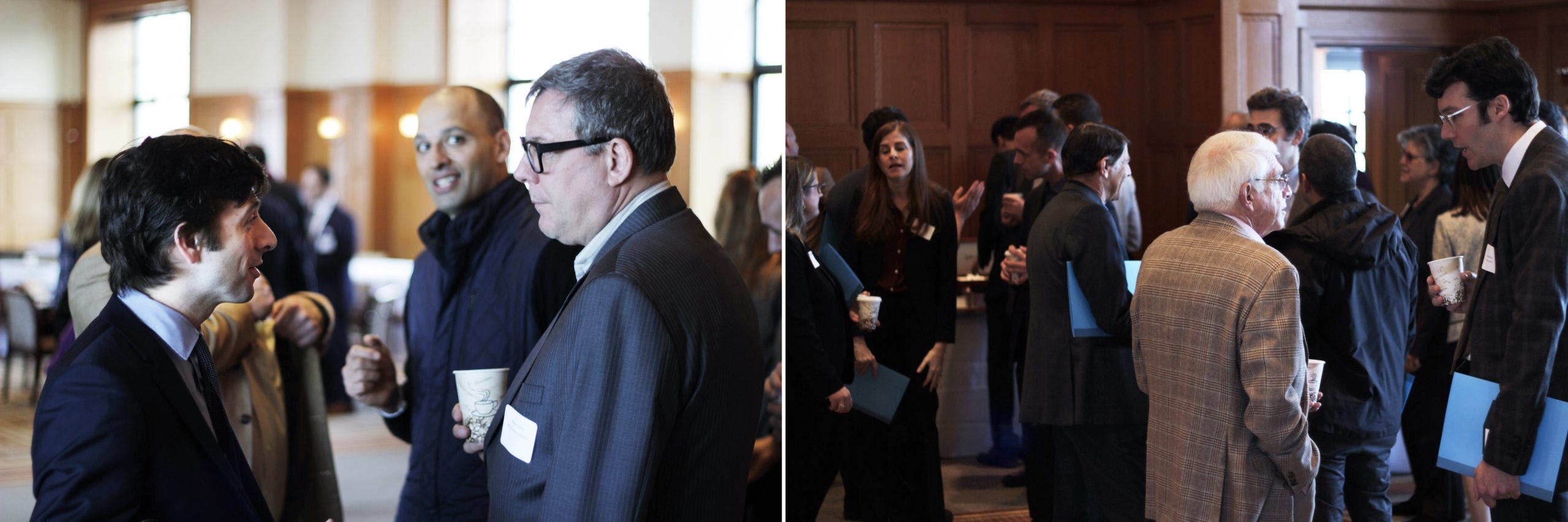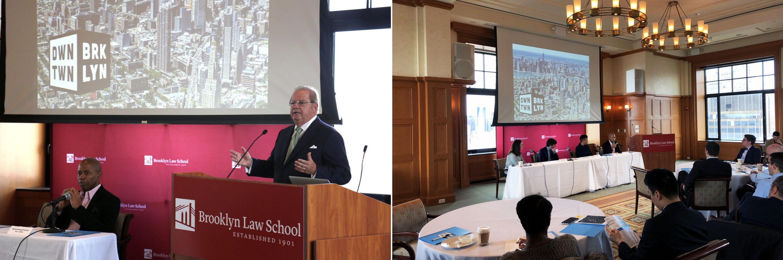 Host Nick Allard, president and dean of brooklyn law school, welcomes the audience (left)