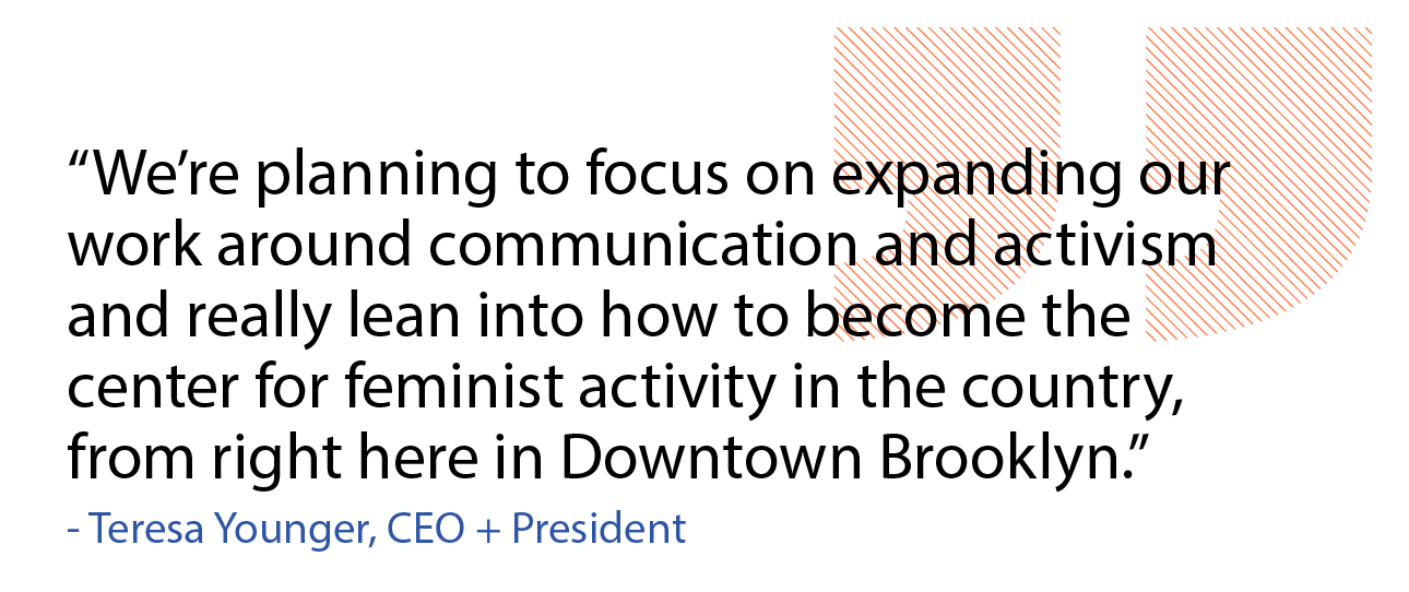 TY: In the next year we will be adding more staff members, which is really exciting. We have about 4 or 5 new positions opening, so we will grow to about 30 people. We’re looking forward to expanding our staff and stabilizing our funding. We’re planning to focus on expanding our work around communication and activism and leaning into how to become the center for feminist activity in the country, from right here in Brooklyn.