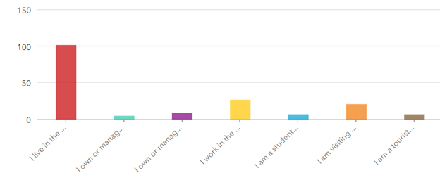 Impressively, 102 (67%) of respondents revealed that they live in the area, underscoring the area’s growing population that calls Downtown Brooklyn home. This significant majority highlights the neighborhood’s appeal not just as a place to work or visit, but as an attractive place to live.