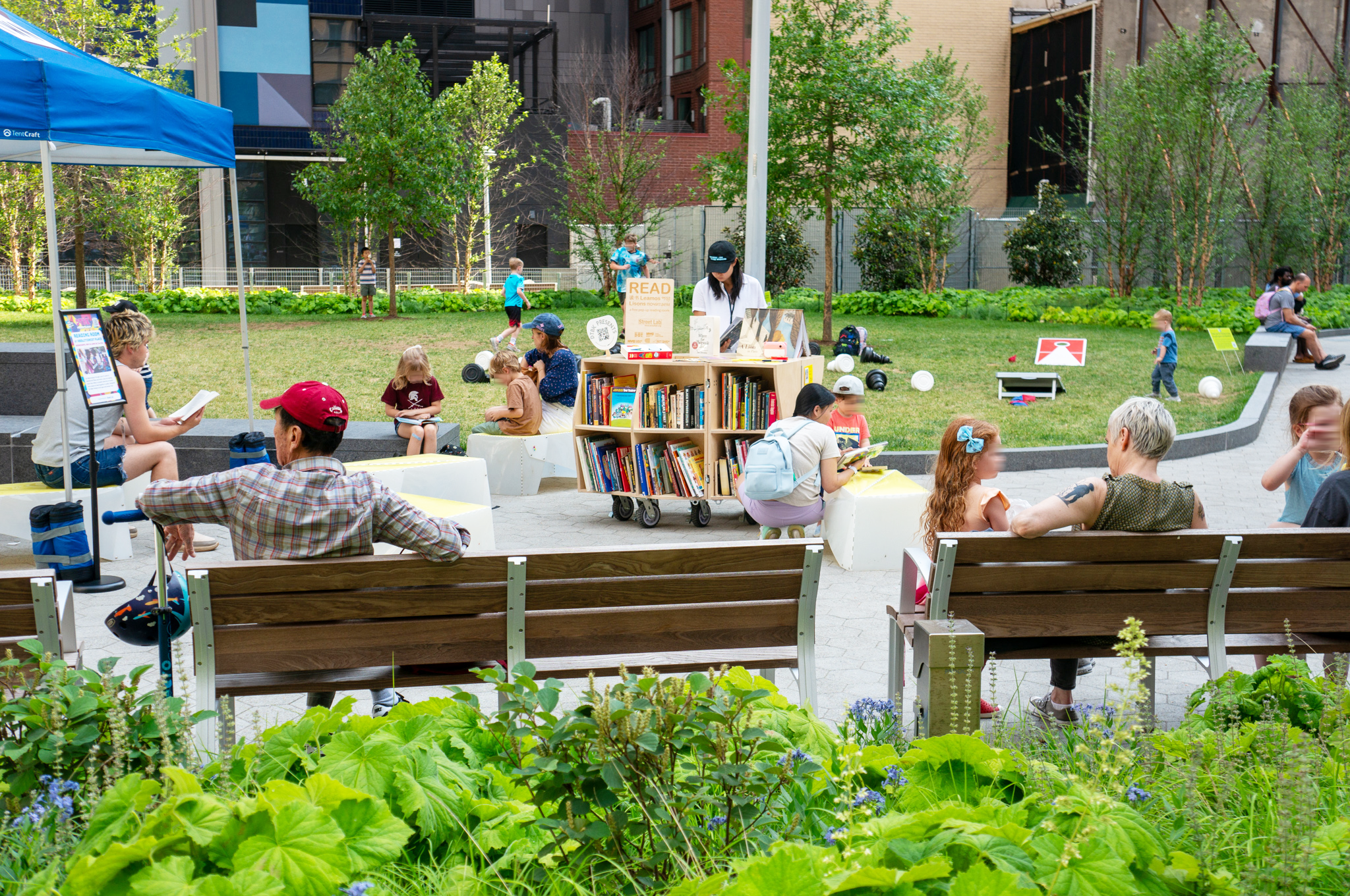 In June, Abolitionist Place came alive with creativity and community during pop-up programming with Street Lab. Visitors of all ages enjoyed Reading Room, a free outdoor library offering a curated selection of books and a cozy space to read together, and Play!, a vibrant obstacle course complete with chalk mazes, racetracks, and colorful barriers. The event series also featured a special collaboration with WNYC for Our City, Our Stories, a series spotlighting local voices and shared experiences from across New York City. Watch our episode.