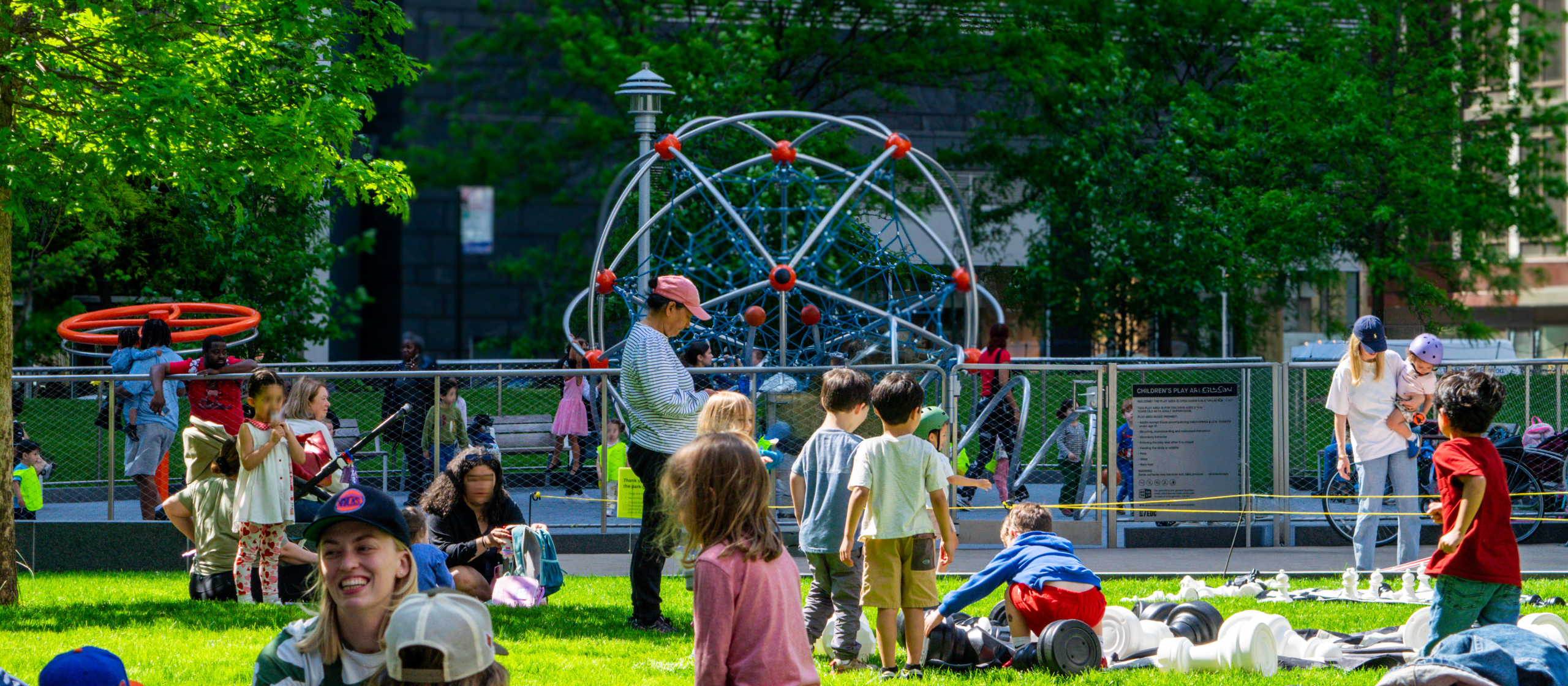 We continue to bring Abolitionist Place to life with dynamic, community-driven programming. In Spring 2025, the park hosted the return of En Garde Arts’ playdate Fest!, whose socially conscious themes feel more relevant than ever, and What’s Up Downtown?, which transforms the space into a giant playroom complete with jumbo board games, juggling by FlowJuggle, and plenty of springtime fun. And there’s more on the way — stay tuned to our events calendar or subscribe to our newsletter to stay in the loop!