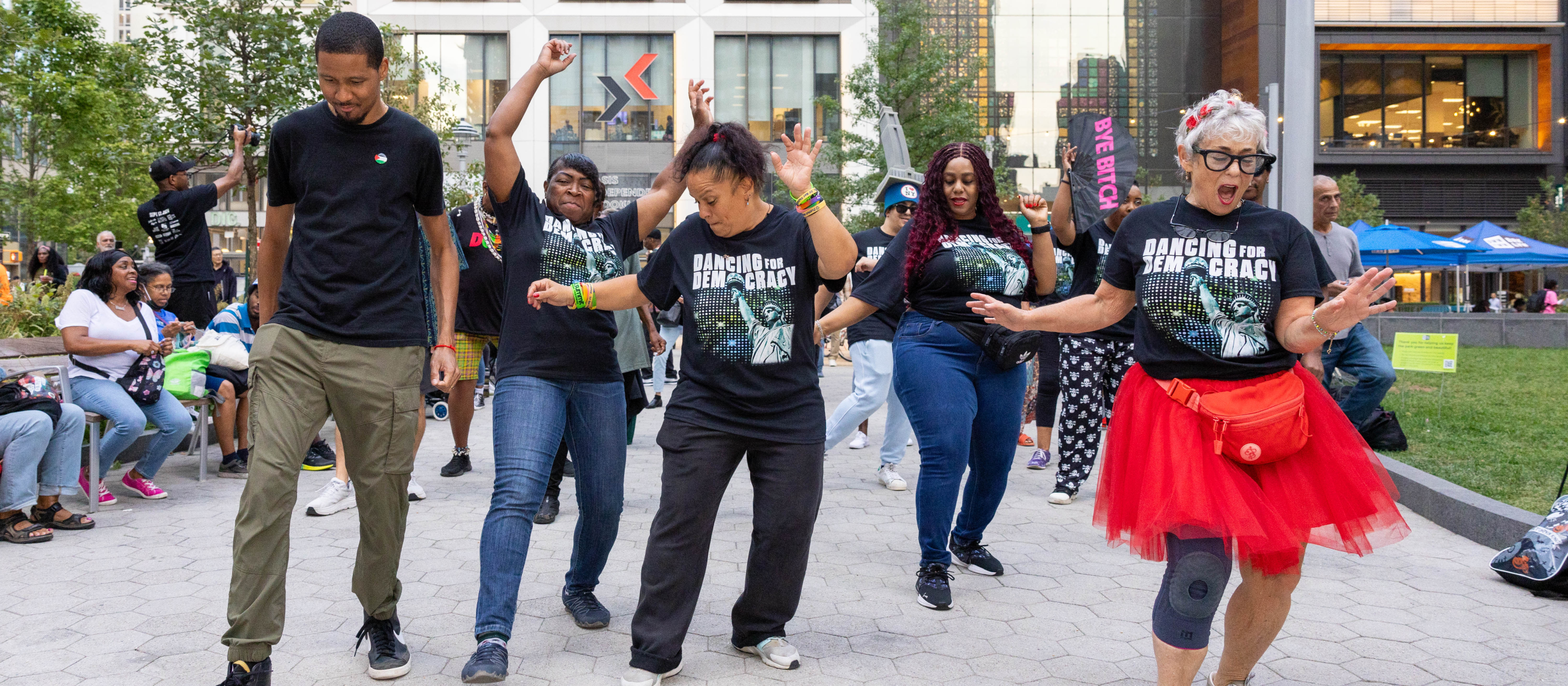 On National Voter Registration Day in September, Abolitionist Place became the setting for Dancing for Democracy, a party to encourage voter participation. DBP partnered with Brooklyn Org, Vinyl Nights, The BKLYN Mavens, and civic organizations, including YVote and NYC Votes, to register voters, dance, and celebrate the spirit of democracy.