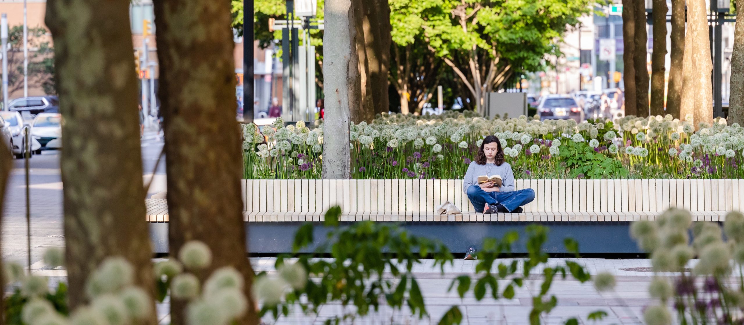 Downtown Brooklyn’s newest open space, Abolitionist Place is an ideal backdrop for your next Instagram post. Bathed in sunlight on a warm summer day, the park’s lush green grass, curved seating, waterplay feature, and lively dog park create an inviting scene that’s hard to resist sharing.