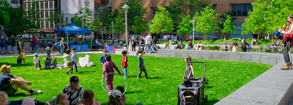May saw the celebration of Abolitionist Place’s one-year anniversary. The park commemorates the Abolitionist Movement in Brooklyn and features a children’s play area, lawn, dog run, plantings, waterplay feature, and seating areas. Since its opening, Abolitionist Place has been embraced by the neighborhood as a great place to meet, enjoy lunch, and play, and has served as a wonderful venue for public programming!