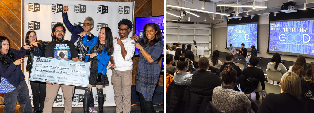 In 2025, Make It in Brooklyn’s (MIIB) programming featured two dynamic pitch contests, which awarded significant prizes and resources to innovative local entrepreneurs. The Diversity in Game Design competition in March saw Made in Brooklyn Games win $5,000 plus legal services and advancement to NYU Tandon’s Game Design Future Lab for their stealth-horror VR game, while the Climate Tech Pitch Contest crowned Coffee Elf as winner for their innovative approach to upcycling spent coffee grounds into bio-based beauty ingredients. MIIB also hosted panels on Tech for Good, Sustainable Technologies, and Design + Technology. MIIB also brought together Downtown Brooklyn’s creative community at the MIIB Design Socials at leading firms like ARO and FXCollaborative, and strengthened local business connections through retail outreach and networking meetups at venues including Sound + Fury Brewery and GOLFZON Social.