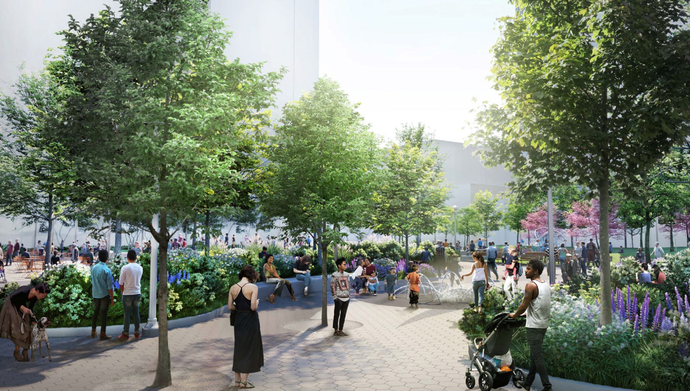 This 1.15 acre site will bring green space and community amenities to Downtown Brooklyn, further enhancing the growing commercial, residential, and cultural hub. Designed by renowned landscape architecture firm Hargreaves Jones, plans include a new play area, lawn space, dog park, lush ornamental plantings, and multiple seating areas.