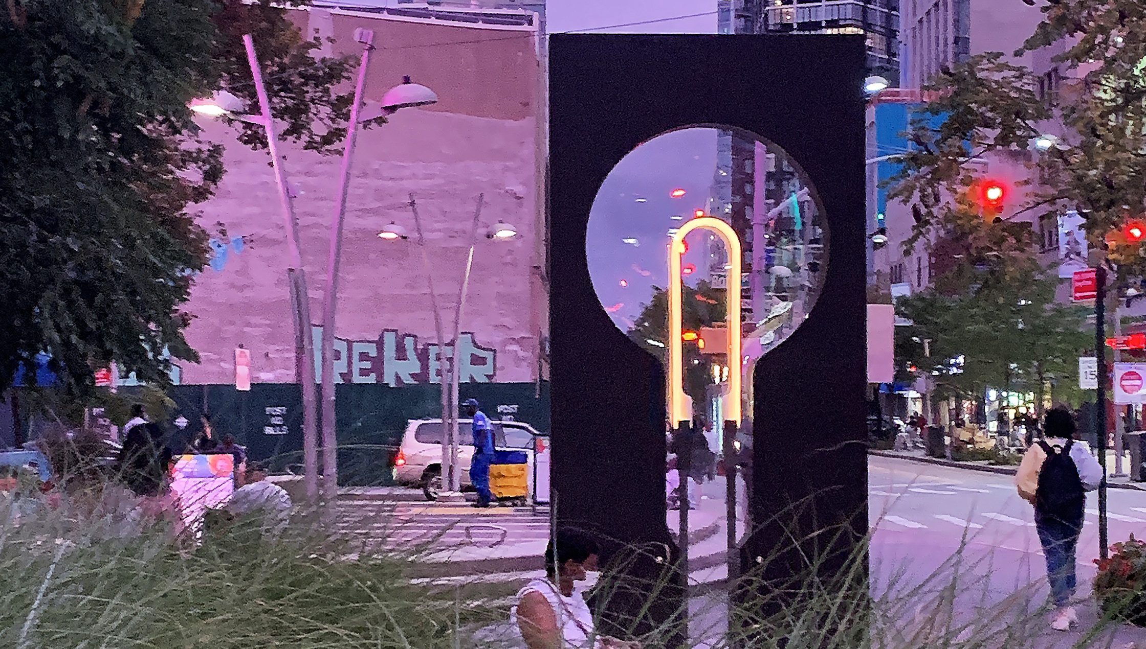 BEACON is an interactive, 13’ tall steel and LED sculpture inspired by African American inventor Lewis H. Latimer’s 1880s patent drawings for the electric lamp and method for manufacturing carbon filament in incandescent bulbs. Beam Center artist, Shervone Neckles, and a collective of Fellows (ages 18-21) together built and will install BEACON. Project partner, Lewis Latimer House Museum, will develop an online educational component to accompany the public work. BEACON is designed as an intergenerational pedagogical tool bridging humanities and STEAM disciplines. It engages the public in local history and commemorates Latimer’s legacy as a Black inventor and his contributions to society and the electrical engineering field.