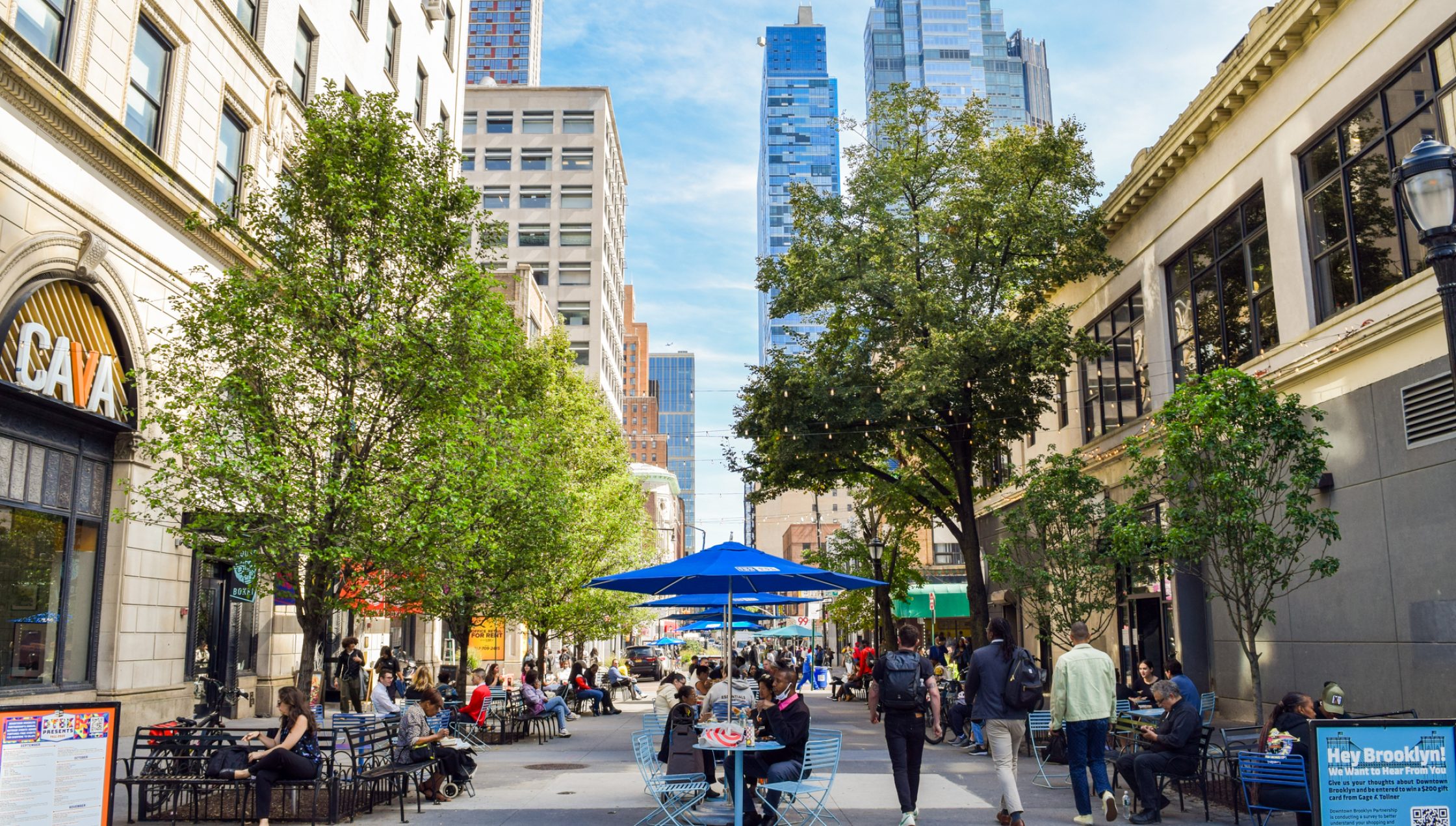 Just off the bustling Fulton Mall (Brooklyn’s most famous shopping district), Willoughby Plaza is surrounded by popular restaurants and cozily lit by tivoli lights in the evenings. Steps from Downtown Brooklyn’s NYU campus, bustling Brooklyn Commons, and the Court Street commercial corridor, the plaza sees a lot of weekday foot traffic. Our popular Summer Salsa series takes place here as well as lunchtime concerts and other events. Willoughby Plaza is a prime location for a variety of events and commercial activations.