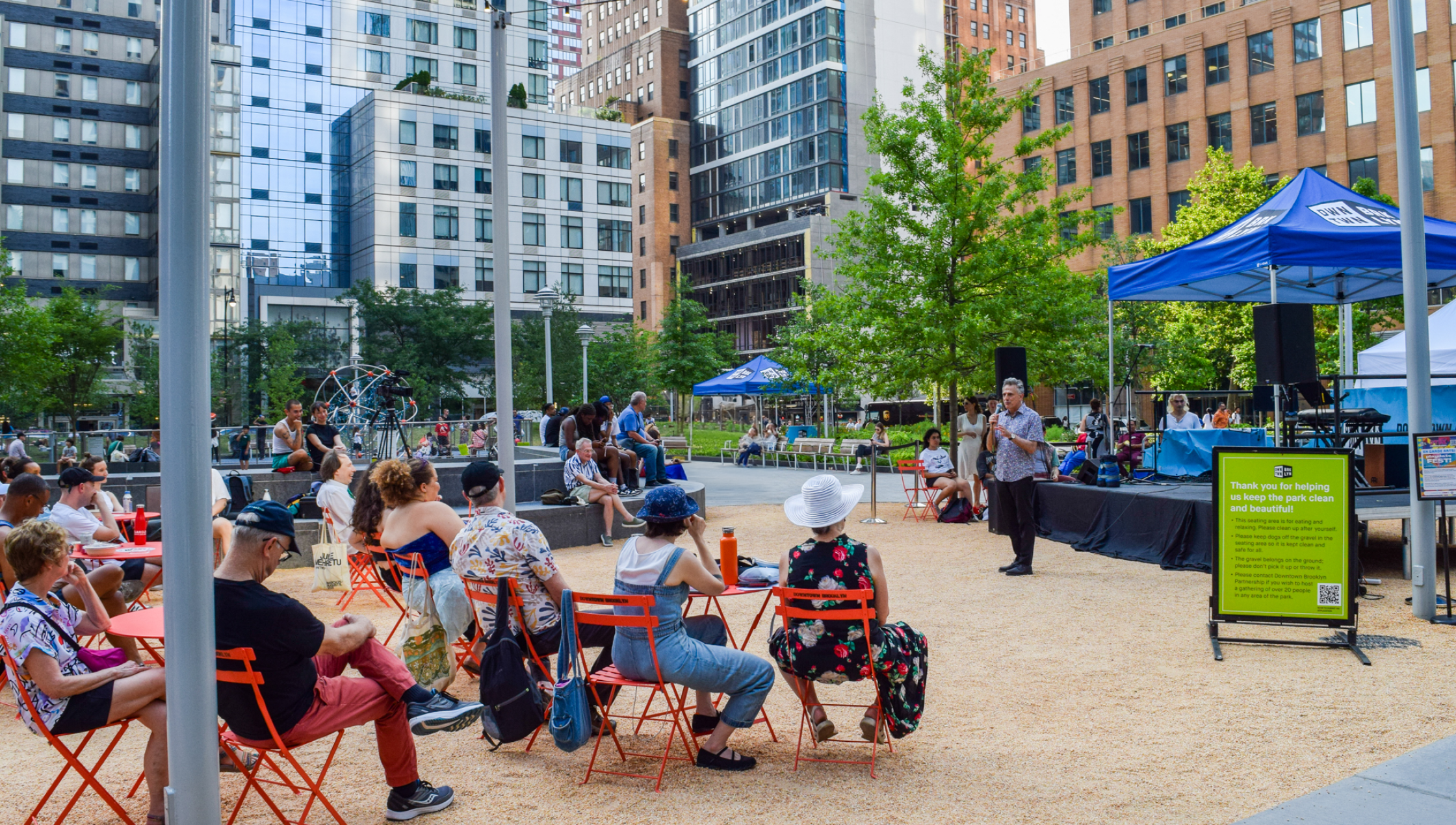 Located in the heart of Brookfield Properties’ bustling office campus known as Brooklyn Commons, Brooklyn Commons Park is a large open space where you are bound to find everyone from students and workers having lunch to parents playing with their children after work. The Commons is the location for events such as outdoor fairs, and DBP’s DTBK Presents series of fitness classes, performances, and ping pong events.