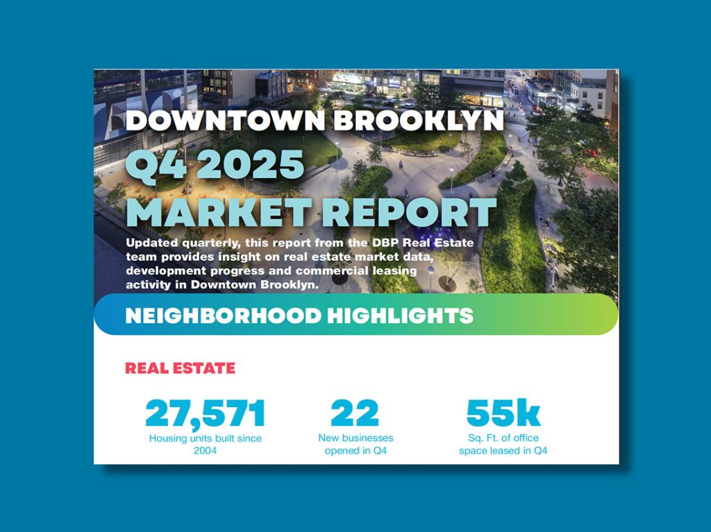 Explore Downtown Brooklyn’s development activity with DBP’s Development Dashboard. This dynamic tool tracks every completed, under construction, and proposed project since the 2004 rezoning. Simply zoom in and click on any property to view detailed project information, photos, and links. Use the left-hand toolbar to search for properties, filter by category or date, or switch to a list view. We’ve also added a data dashboard for quick insights and a downloadable spreadsheet.