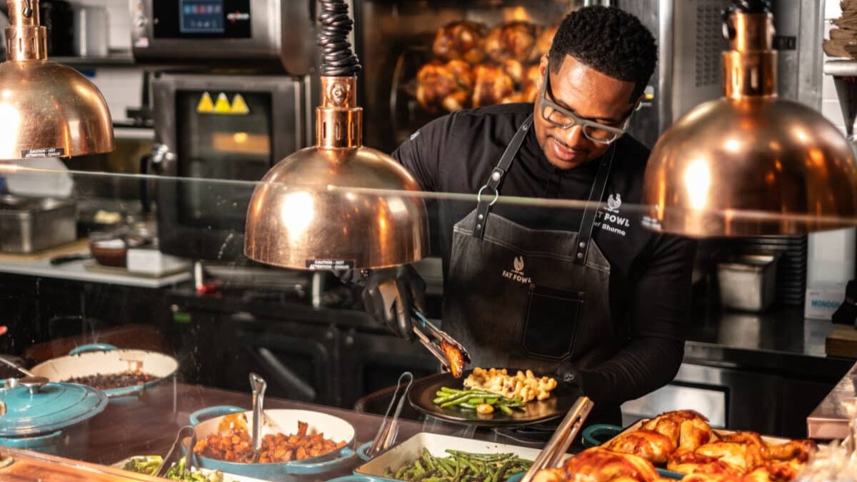 Fat Fowl, located in Brooklyn’s DeKalb Market Hall, is the brainchild of Chef Shorne Benjamin, offering a “New Age Caribbean” culinary experience that reimagines traditional Caribbean dishes with innovative twists. Signature menu items include the oxtail grilled cheese and lavender rotisserie chicken, which have garnered widespread acclaim and a devoted following.