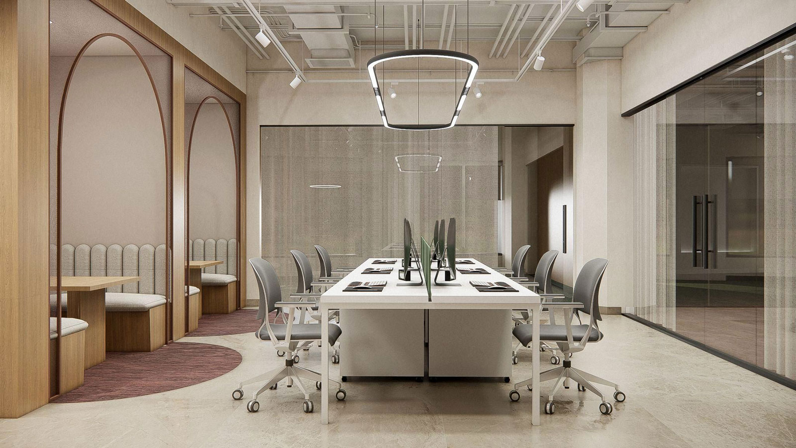 Inside, the new location offers 65 private office units, each designed to welcome natural light and allow for total customization. The layout includes four modern meeting rooms, sound-treated phone booths, and an expansive upgraded kitchen, now redesigned as a shared social space rather than a simple utility area. A new reception and concierge zone will greet members and visitors with a blend of hospitality driven service and bright, modern finishes.