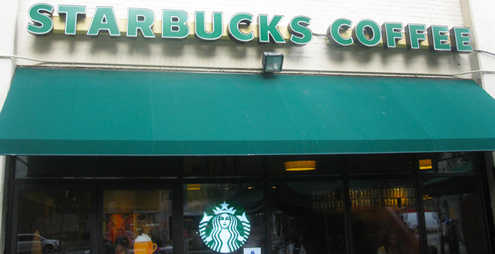 Starbucks is the largest coffeehouse company in the world, with nearly 20,000 stores across the globe. Their baristas serve high-quality whole bean coffees, espresso drinks, Tazo® teas, and a delectable selection of pastries and treats. Seasonal drinks and pastries are available on a rotating schedule.