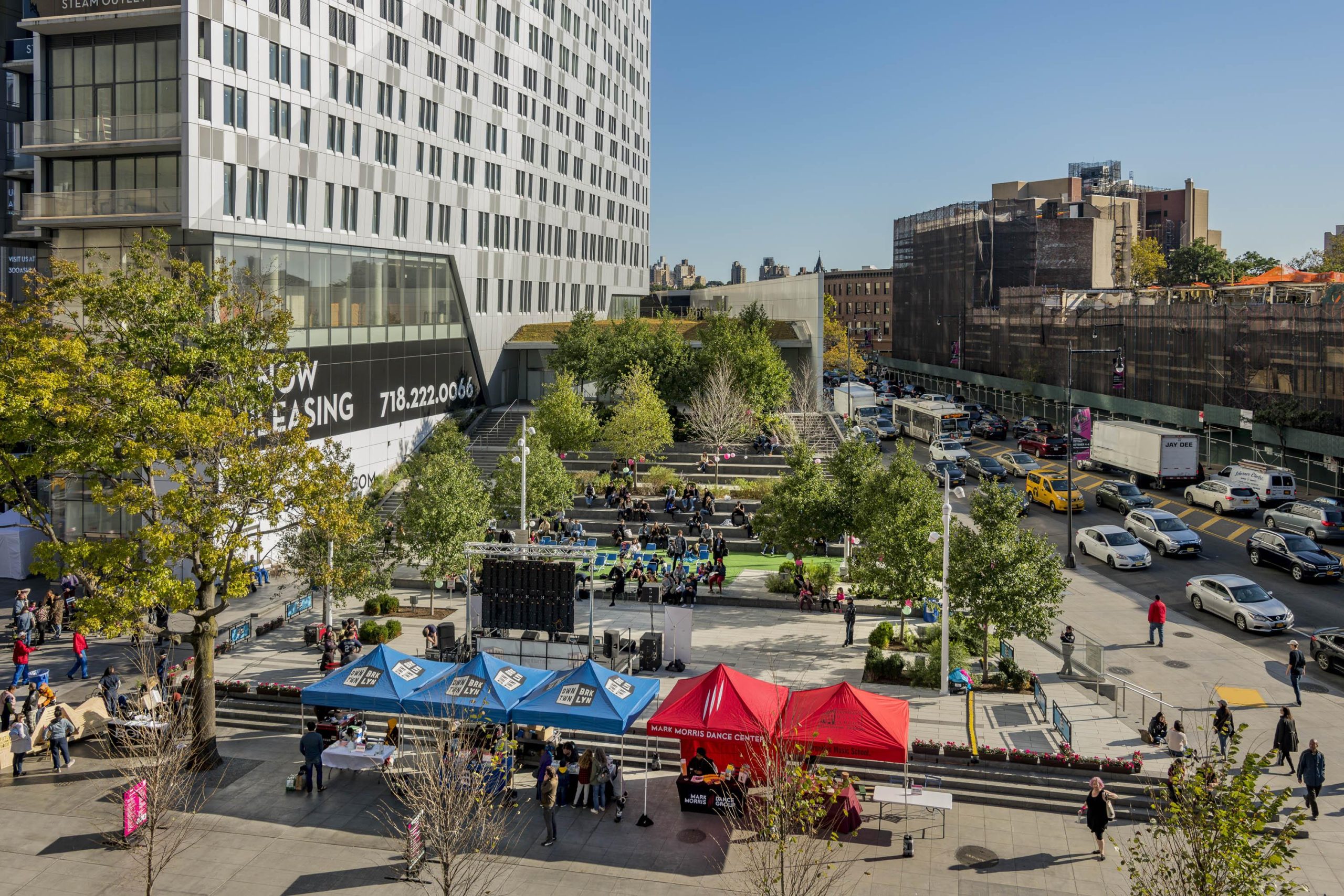 The expansive plaza at the heart of the Brooklyn Cultural District, situated next to the Apple Downtown Brooklyn and Whole Foods stores, hosts programming from premier local cultural organizations such as 651 Arts, Mark Morris Dance Group, Theatre For a New Audience, BRIC Arts Media, BAM, and more.