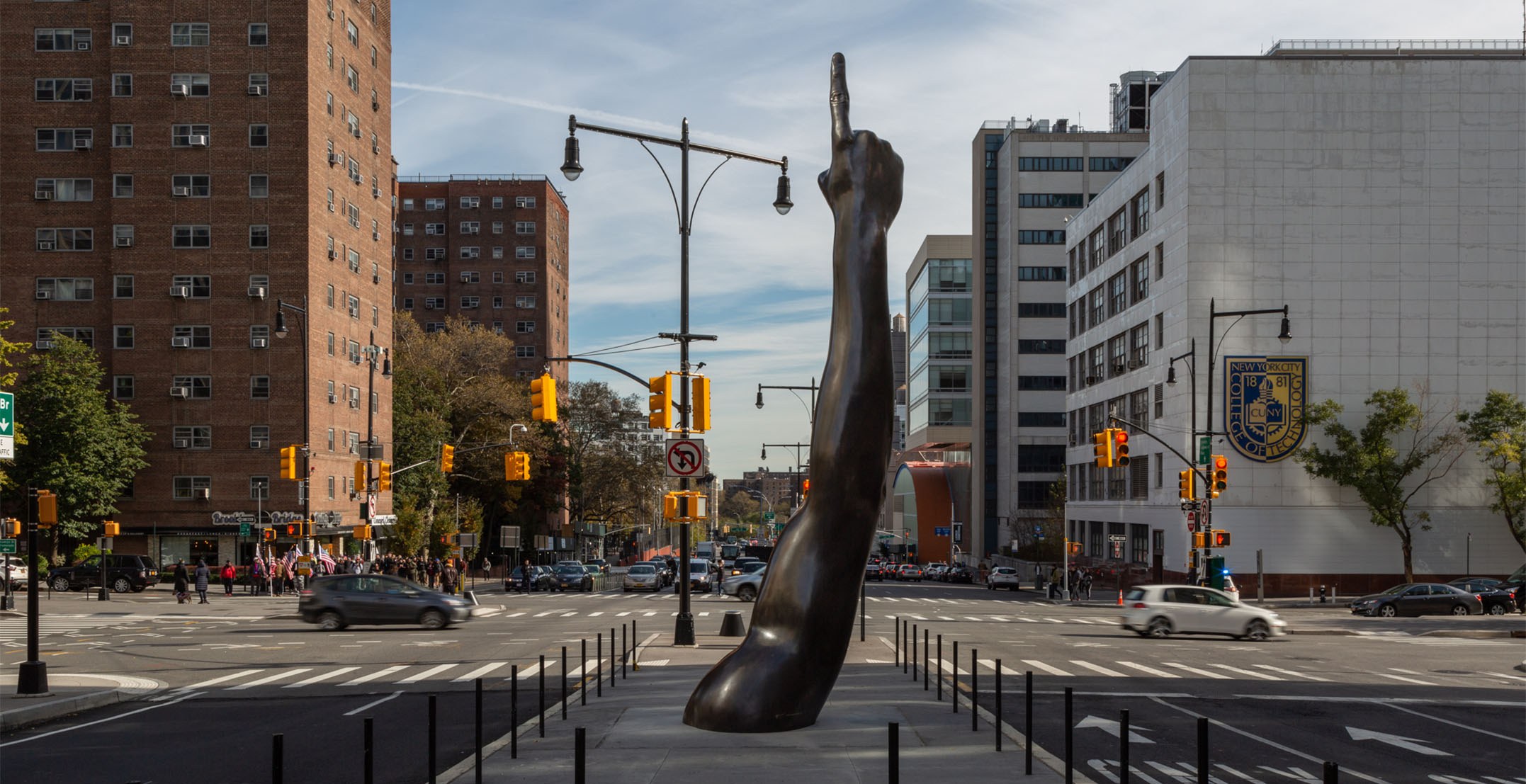 This large-scale sculpture of a bronze arm communicates a myriad of ideas about individual and collective identity, ambition and perseverance. The piece measures 22.5 feet in height, emerges from the ground and points towards the sky, echoing the Statue of Liberty’s iconic gesture.
