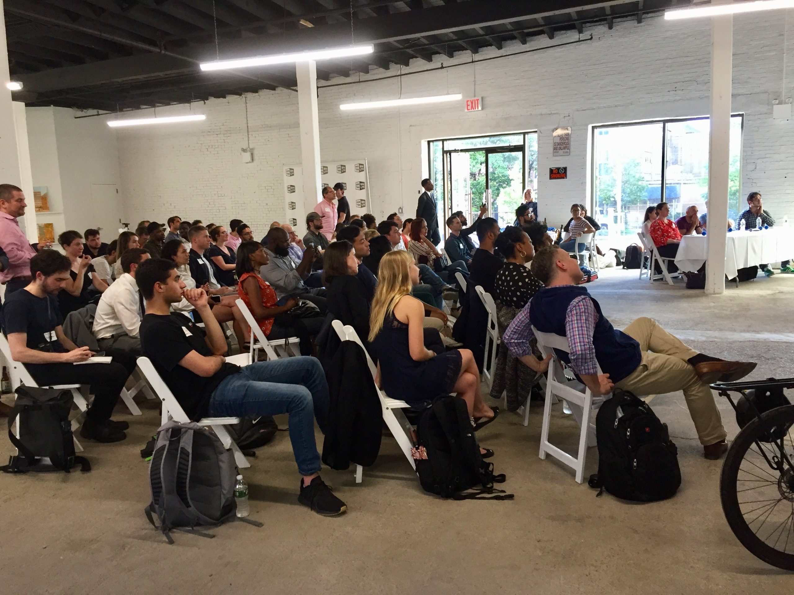 Judging the competition were some of Brooklyn’s finest: Jess Schumer, executive director of Friends of the BQX, Charlie O’Donnell, the founder and general partner of Brooklyn Bridge Ventures, John Rapaport, a partner at Cyrus Capital Partners, Natalia Quintero, the managing director of the Tech Transit Lab, and Jason Cahill, the managing partner at Carbon Ventures.