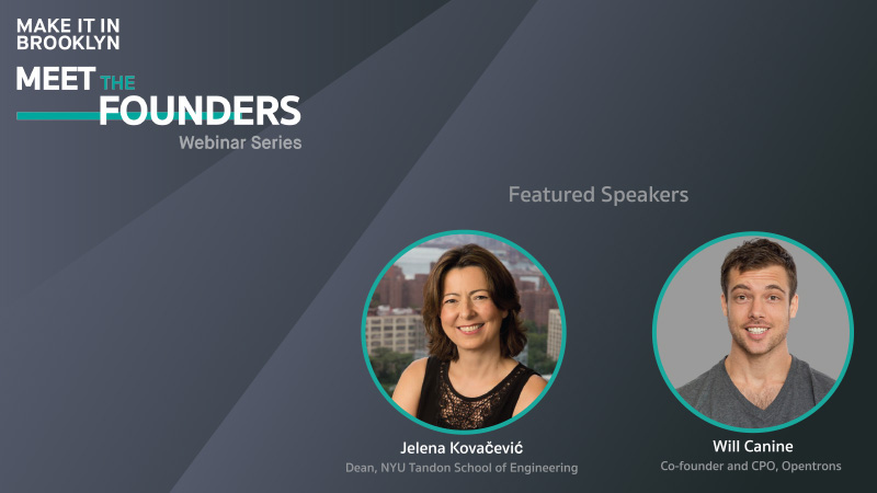 DBP’s virtual series, Meet the Founders, launched last month with a webinar featuring Jelena Kovačević, Dean of the NYU Tandon School of Engineering and Will Canine, co-founder and CPO of biotech startup Opentrons.