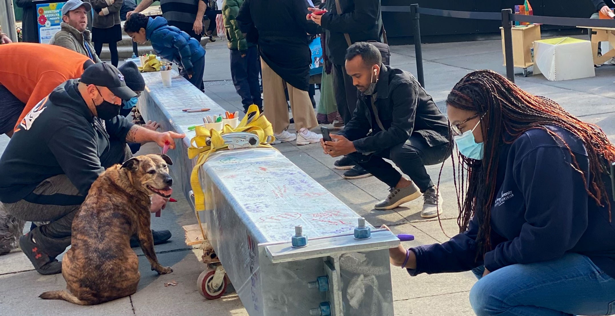Visitors to Albee Square had the opportunity to commemorate the topping out of Brooklyn’s tallest building, The Brooklyn Tower, by signing the last steel I-beam to be placed atop of the building. Kids were invited to play with Legos, courtesy of Street Labs Build NYC, and tours were conducted of the historic Dime Savings Bank with Open House New York.