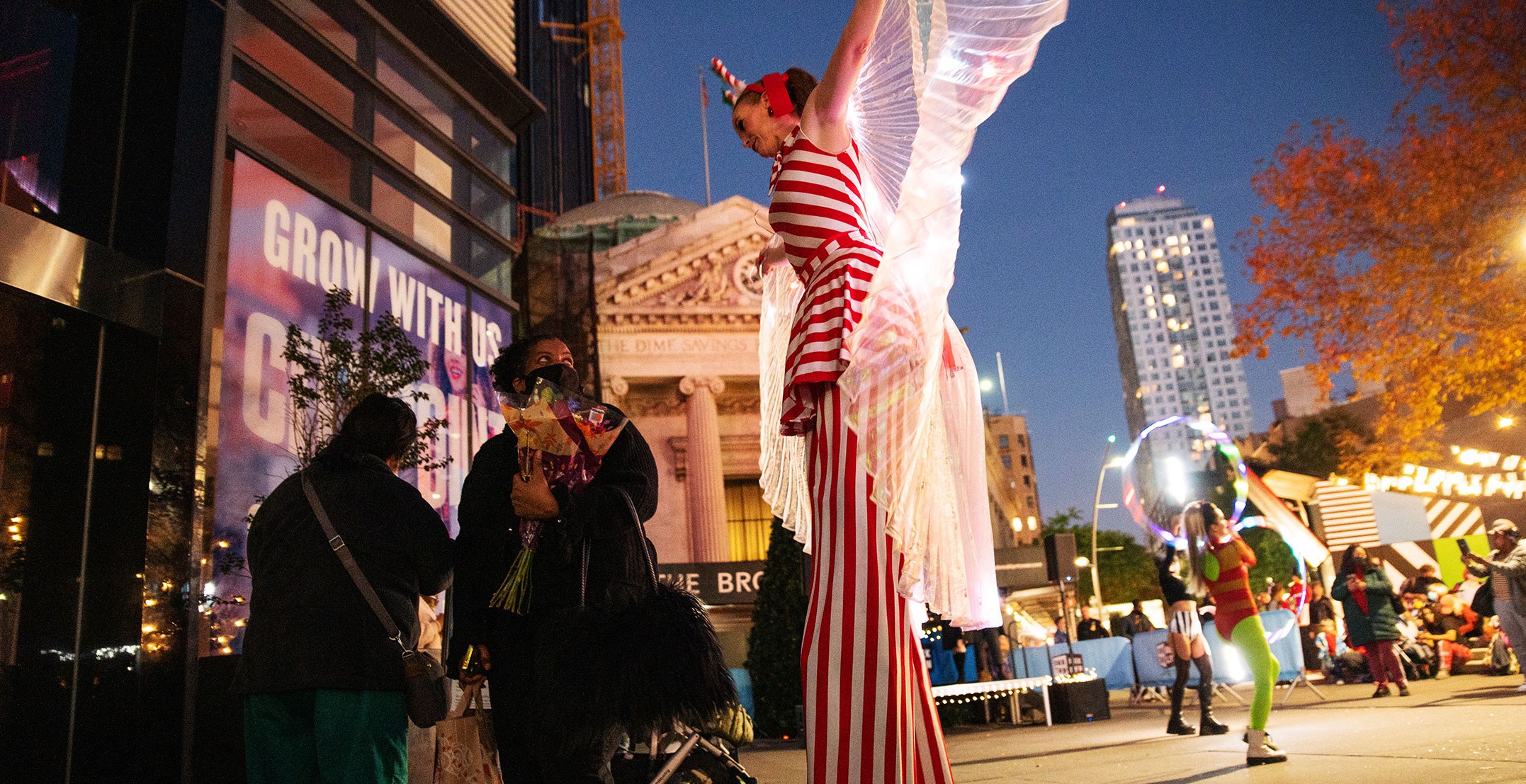 Kicking off the holiday season in November, Downtown Brooklyn Gets Lit! created a magical wonderland of lights with illuminated stilt walkers, hula hoopers, jugglers, and more.
