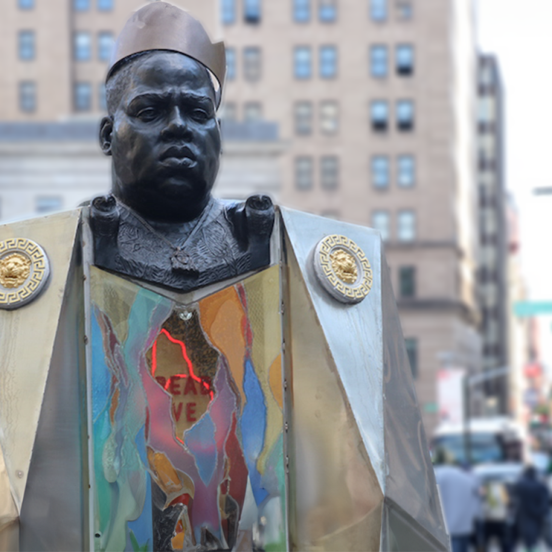 “‘It was all a dream,’ the opening lyric from The Notorious B.I.G.’s hit track ‘Juicy,’ exemplifies my dream of creating this monument. Receiving a grant from the Downtown Brooklyn + Dumbo Art Fund offers me the support and resources to execute this dream project and introduce it to the community of Brooklyn. Delivering this project means so much to me personally, my story and artistic development as well as countless fans of Hip-Hop Culture who continue to be positively affected and influenced by the communal experiences and sonic frequencies of B.I.G.’s artistry. I cherish the significance of the potential impact on young children of color who will have an opportunity to experience a public sculpture that represents and reflects their identity, circumstance and/or dreams,” said Sherwin Banfield, the artist.