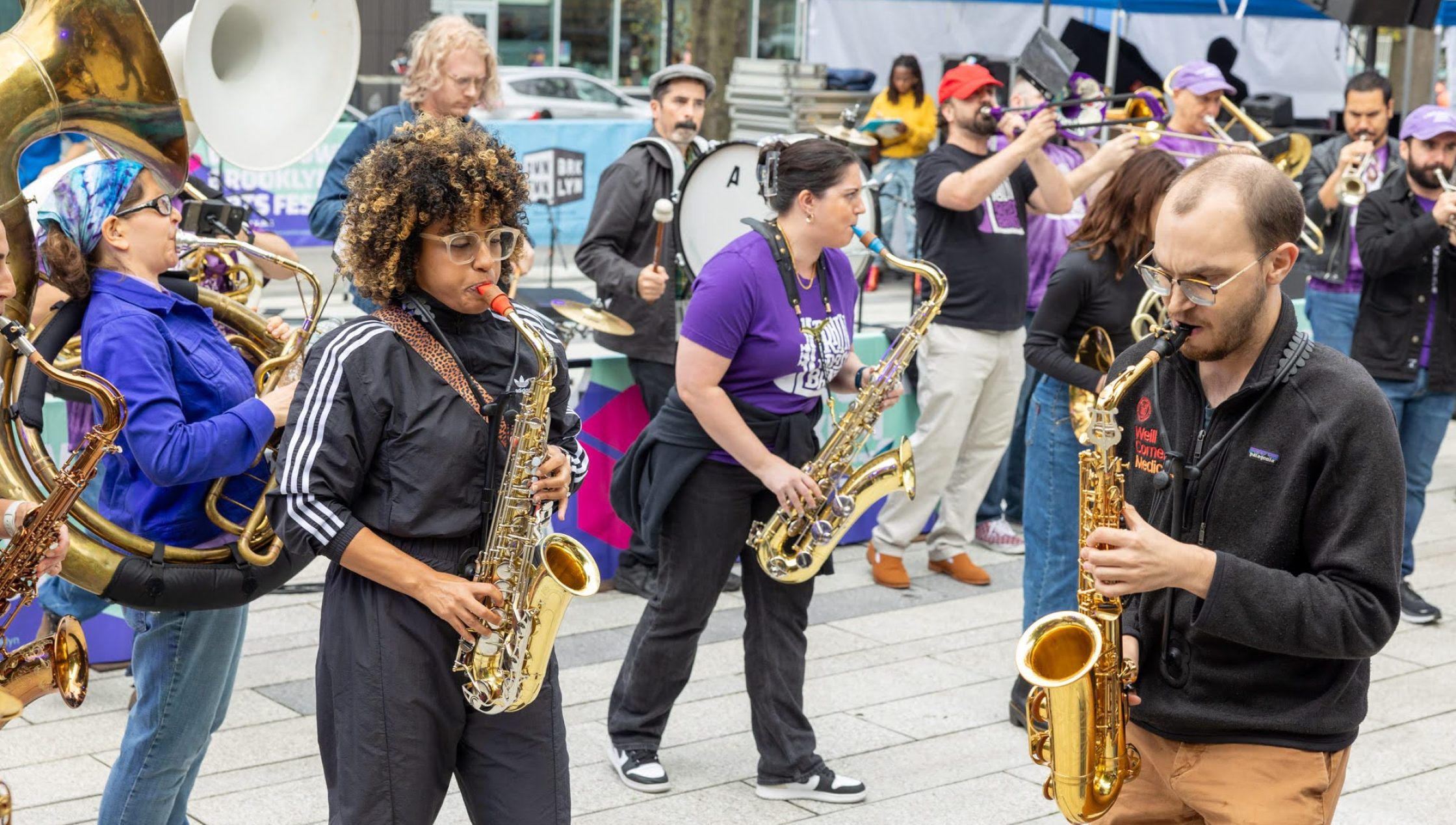 Day 1 of the festival was upstaged by the remnants of Hurricane Idalia, but Saturday saw some of Brooklyn’s best perform back-to-back sets that spanned a wide variety of musical genres and sounds. The L Train Brass Band fired up the Plaza with 45 minutes of rollicking pop, hip-hop, and funk songs remixed in a big-band style – and no one could refrain from dancing or singing along!