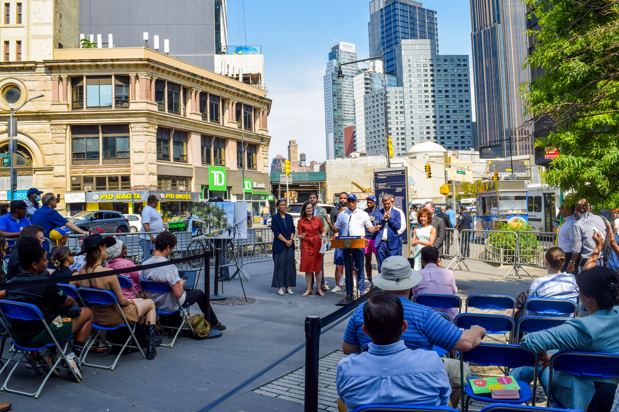New York City Mayor Eric Adams, New York City Department of Parks & Recreation (NYC Parks) Commissioner Sue Donoghue, and New York City Department of Transportation (DOT) Commissioner Ydanis Rodriguez today announced a more than $40 million investment to deliver vibrant public spaces and street safety improvements along Fulton Street and across Downtown Brooklyn. This project will deliver streetscape improvements, transportation and public space upgrades including improved bus service and new public art, and pedestrian and roadway user safety enhancements — supporting the continued recovery of Brooklyn’s largest economic hub. The project is part of Mayor Adams’ $375 million investment in creating exciting, new public spaces across all five boroughs outlined in his “Working People’s Agenda,” and builds on the goals of the “New” New York Panel for the growth of the city’s commercial districts.