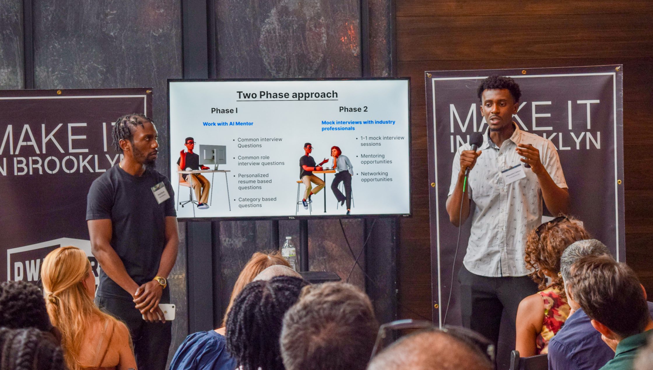 At the Make It in Brooklyn AI Tech for Good Pitch Contest, Libbie Health founder Colette Ellis stole the show with her pitch to support the mental health of BIPOC women. In a steep competition, Ellis showcased an innovative use of AI technology for good, impressing the judges to win the $5,000 cash prize and in-kind legal services provided by Brooklyn Law School.