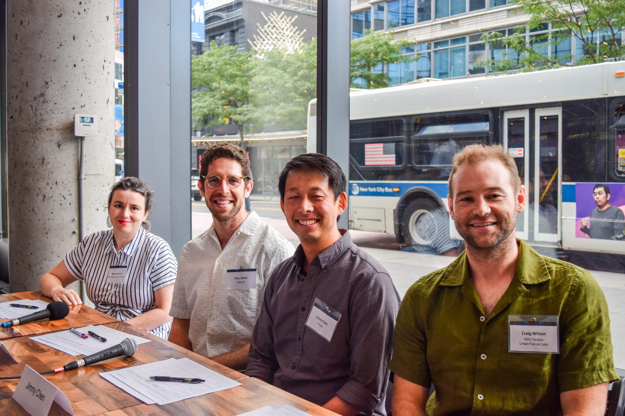 Hosted at Gotham Market at the Ashland, attendees came out to see these impressive contestants pitch to five expert judges. With only three minutes to present, the finalist pitches were supported by extensive data and research. The judges panel featured a range of experts from successful startups, city agencies, and institutions: Jimmy Chen, Founder of Propel; Martha Norrick, Chief Technology Officer at NYC Office of Data Analytics; Craig Wilson, Managing Director at NYU Tandon Urban Future Labs; and Etay Zwick, Design Manager at NewLab. Showcasing many areas of expertise, the competition gave a firsthand look into the potential for the rapidly evolving AI tech sector.