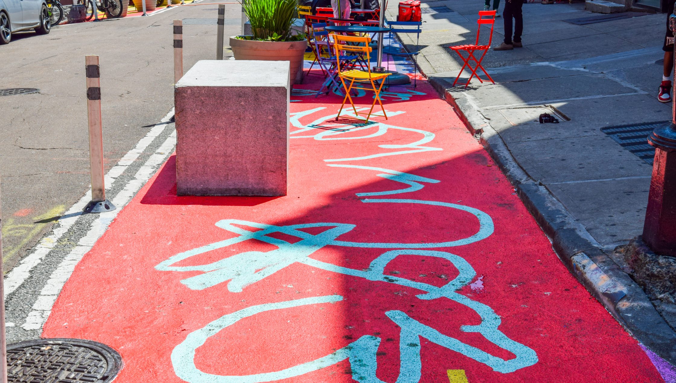 Also known as a “pedestrian-priority” streets, Shared Streets are designed to slow travel speeds where pedestrians and cyclists are prioritized, and motorists are treated as guests. On Shared Streets, necessary vehicular access is maintained for loading, carting, parking, and other services, and slow vehicular speeds are preserved through traffic calming measures, signage, street markings, and the addition of public space amenities in expanded pedestrian spaces. The