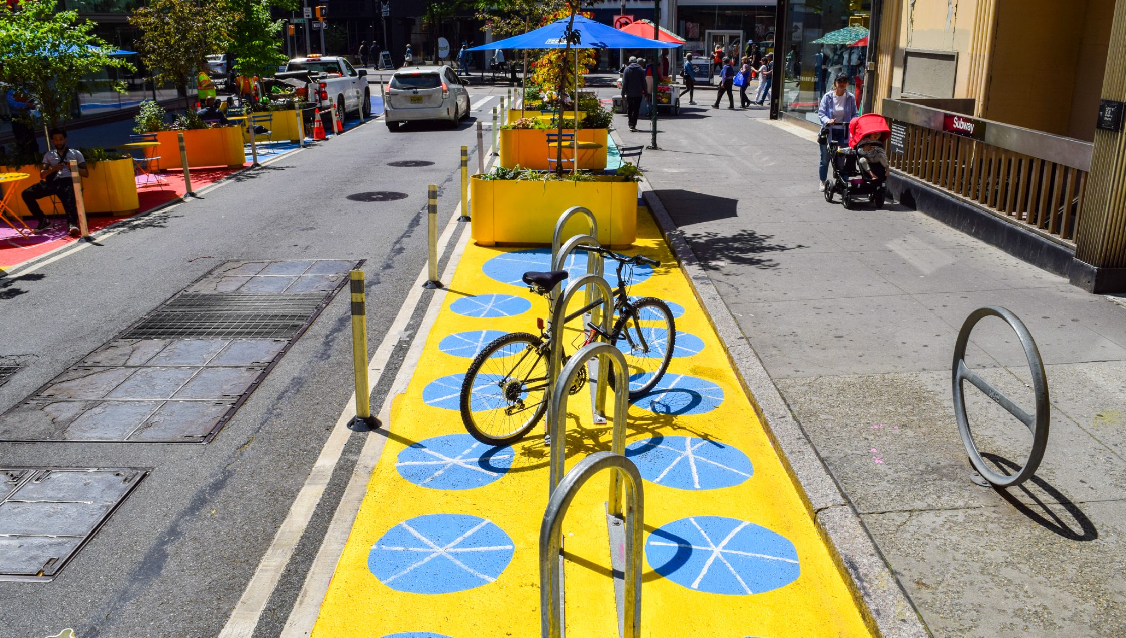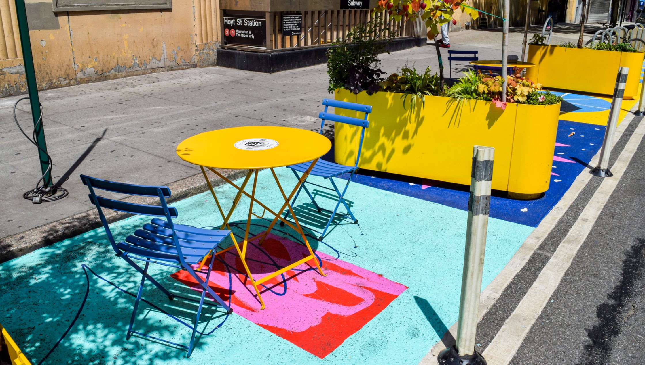 Shared Street model was launched in Downtown Brooklyn on Pearl and Willoughby Streets in 2019 and is being expanded across blocks in the core of Downtown Brooklyn.