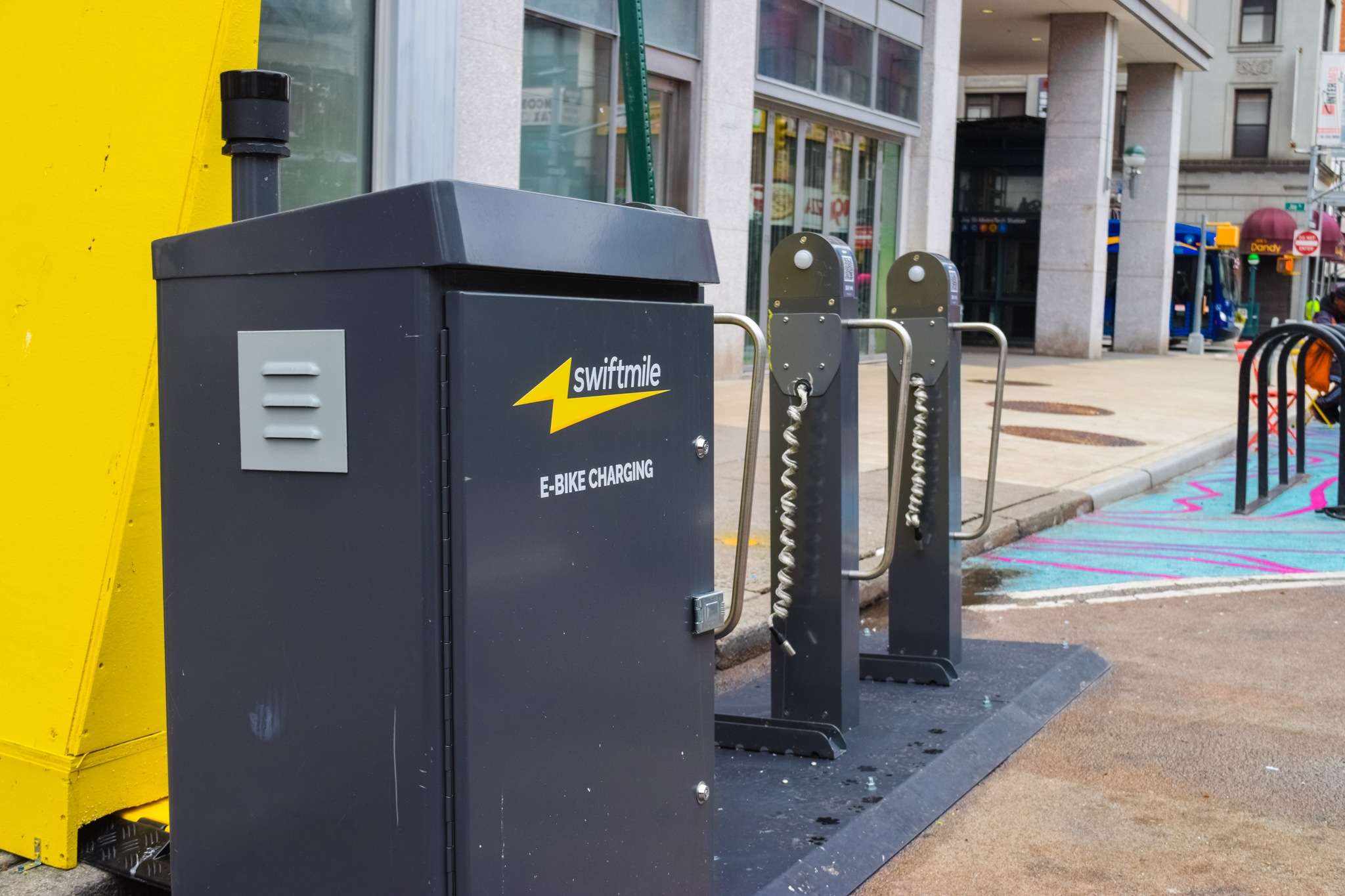 Three companies — Swobbee, Popwheels, and Swiftmile — are providing charging infrastructure for the pilot. Swobbee and Popwheels are providing swappable battery systems, enabling participating e-bike users to swap a depleted, UL-certified e-bike battery for a fully-charged battery at designated outdoor battery cabinets. Swiftmile is providing a secure charging bike rack where participating e-bike users can lock up their bikes and charge while parked. The three technologies include fire safety features, ranging from automatic shutoff if a battery is overheating to fire suppression systems. The FDNY, a key partner in the pilot, reviewed product development and will also inspect each pilot location during installation and throughout the duration of the program.