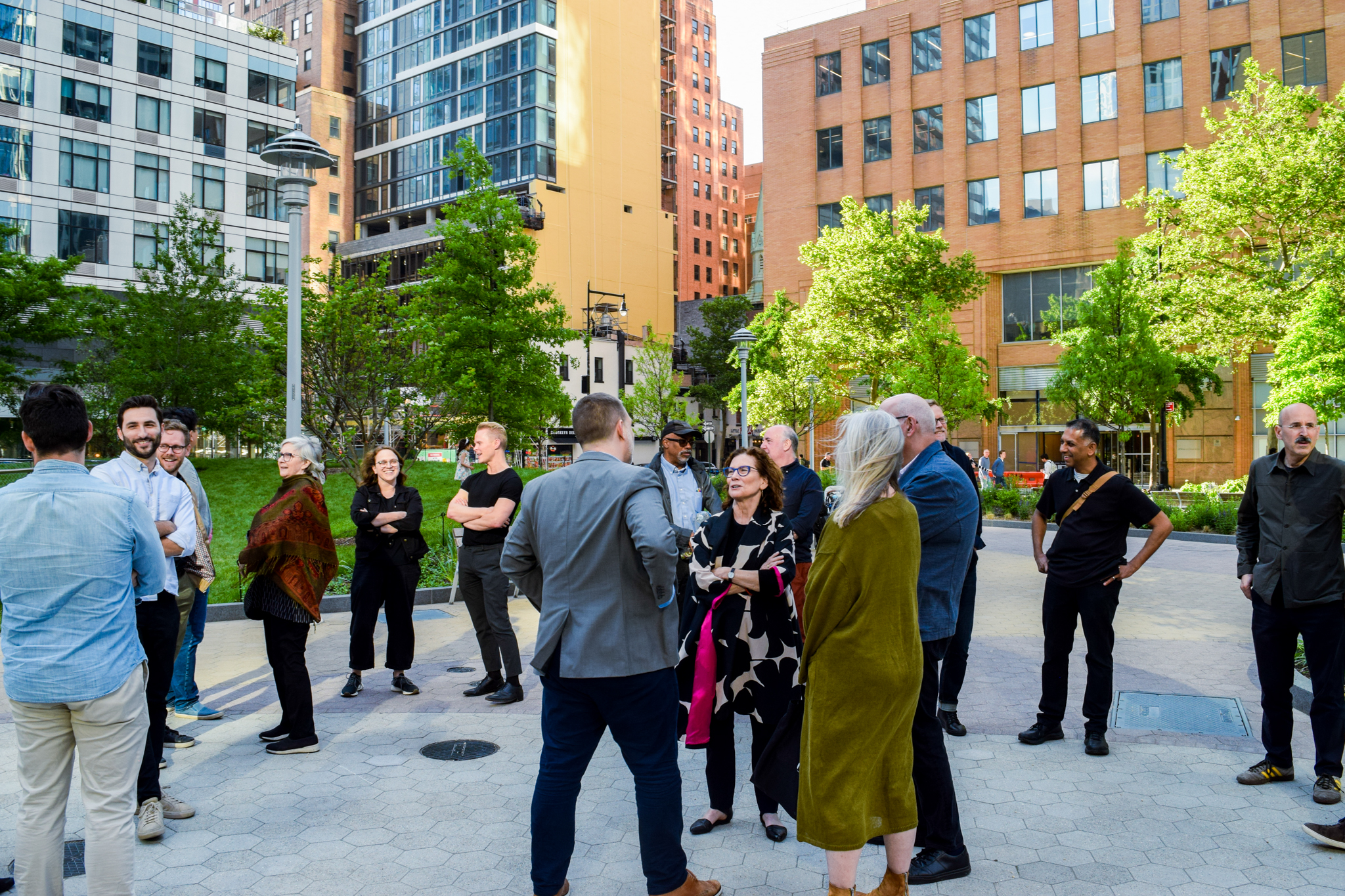 Following the tour, attendees gathered on the terrace of FXCollaborative, overlooking the park and Downtown Brooklyn skyline. Dan Kaplan, senior partner at FXCollaborative, welcomed the large group, which included staff from design firms such as ARO, SO-IL and W Architecture, who made new connections and enjoyed the beautiful evening.