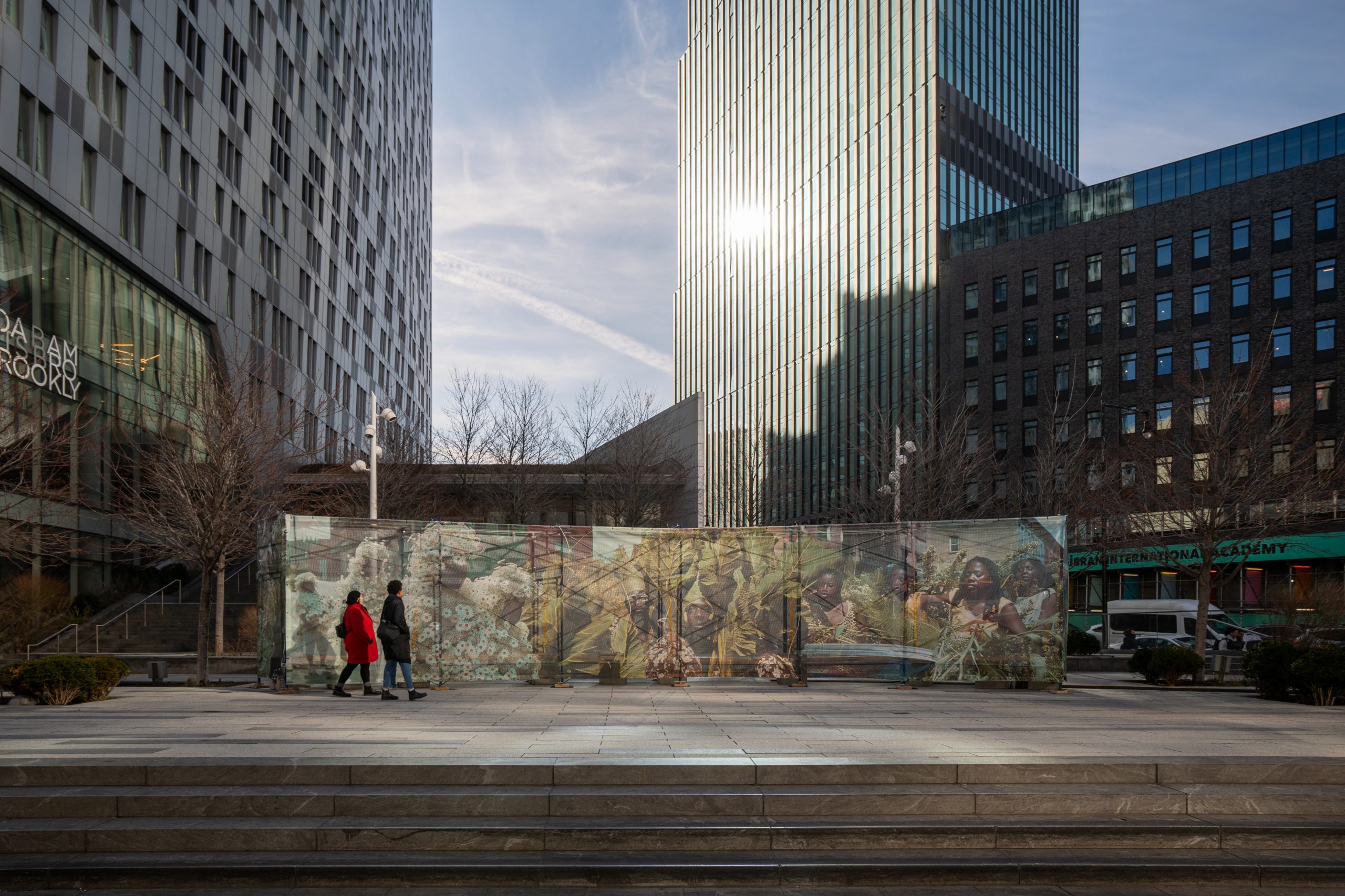 Downtown Brooklyn Partnership and Van Alen Institute today unveiled Ugly Beauties, a new public art installation by artist Curry J. Hackett at The Plaza at 300 Ashland. Commissioned by DBP with support from Two Trees Management Co, Ugly Beauties features a panoramic display of AI-generated images of Black people juxtaposed with the various native and invasive plant species — so-called “weeds” — that flourish in New York City, prompting viewers to consider society’s perception of beauty and belonging. Ugly Beauties will be on view until April 24, 2024.