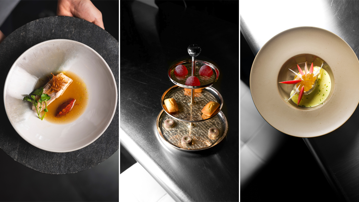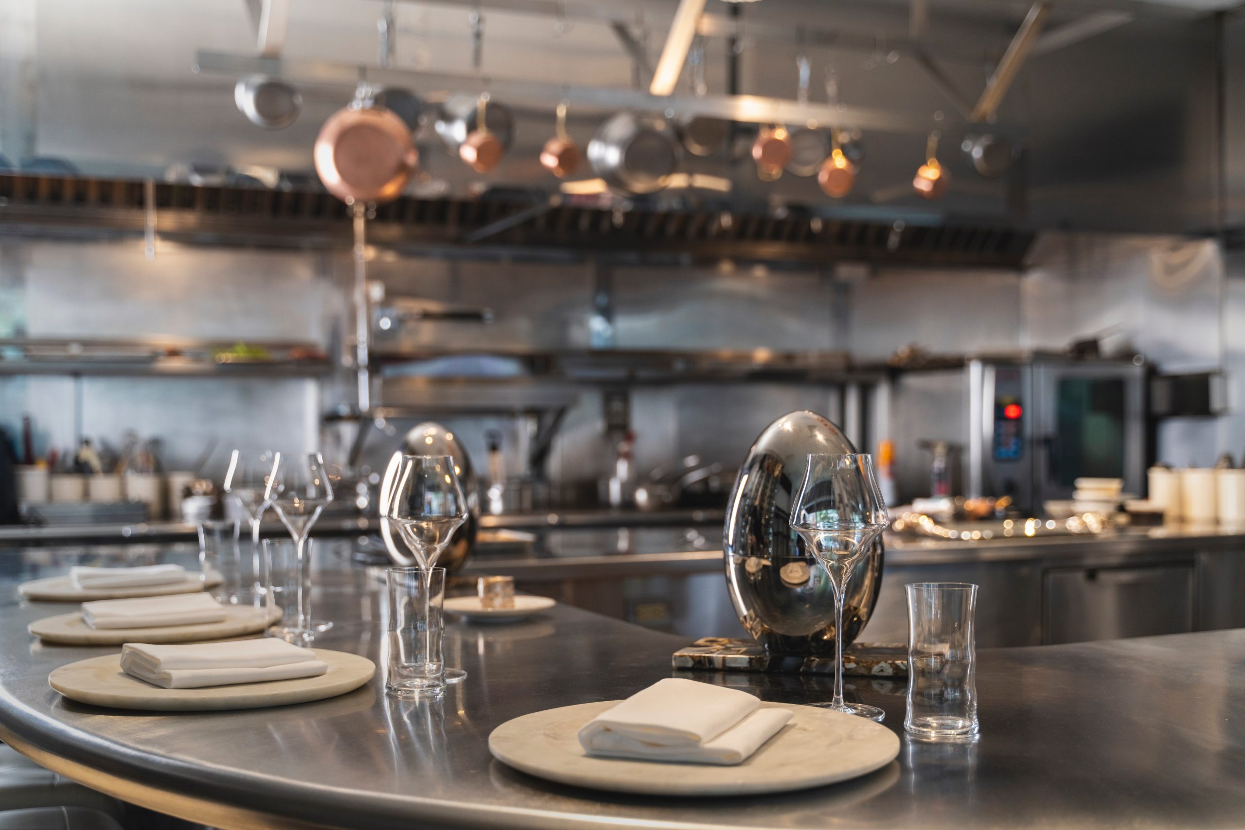 An intimate jewel box of a space, Maison Sun seats just seven diners at its nightly service. The interior reflects Carlos’ academic background in unexpected ways. Sterling silver and rose gold eggs aren’t mere decoration—they reference motifs of unity with nature from 19th-century German Romantic literature. A custom Pennine crystal chandelier suggesting sun and clouds floats above a vintage Molteni stove. These elements create a space where industrial precision meets artistic beauty.