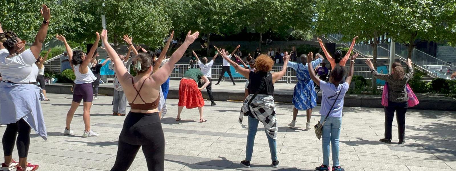 DanceAfrica Outdoor Bazaar and Ailey Arts In Education-Finding Grace Community Workshop return to The Plaza at 300 Ashland. We commemorate Juneteenth with 651 Arts’ We Outside! A BK Juneteenth, Vol. IV, and host the 2026 finale of BRIC’s Brooklyn Poetry Slam, hosted by Mahogany L. Browne and Jive Poetic. Our popular Friday Night Dance! returns with dynamic duo DJs Mickey Perez and Toribio and Public Service, a party featuring the best of crowd moving music to grace a dance floor.