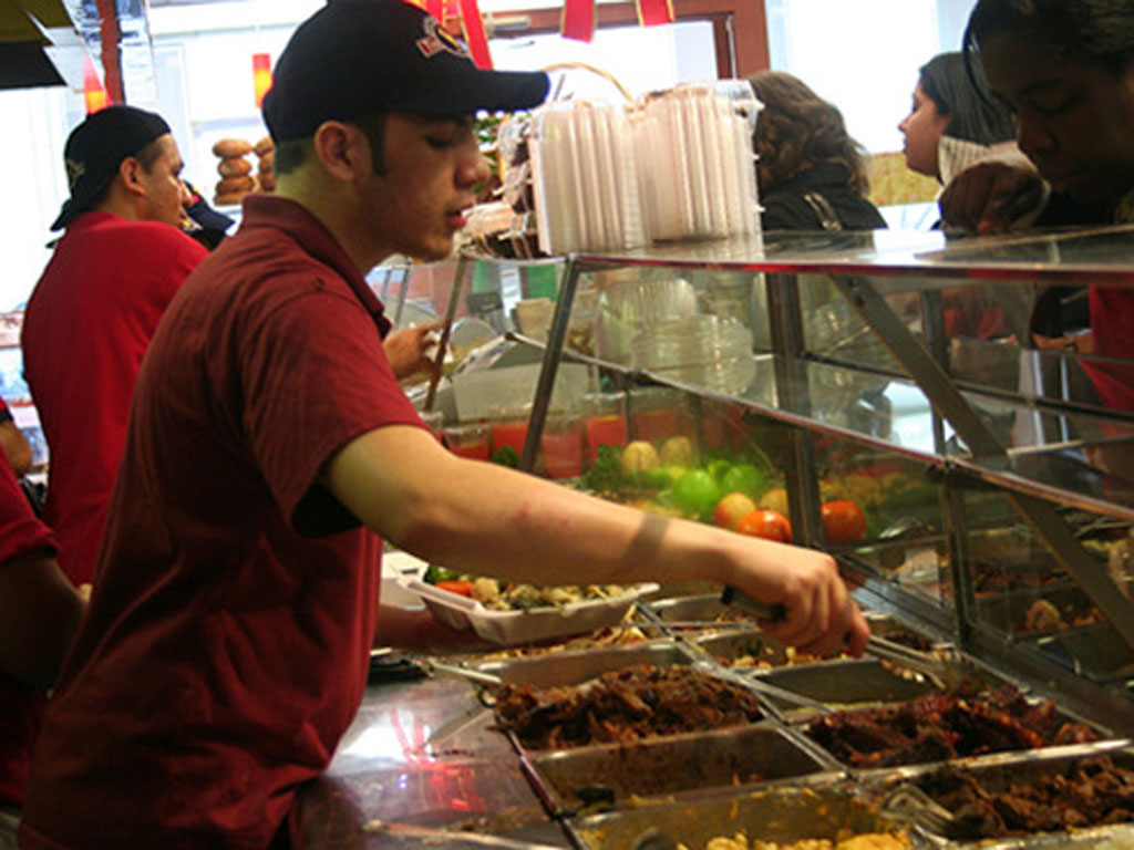 Local favorite, Tio Pio, is a unique eatery specializing in Spanish-American cuisine. Step in line and take your pick of roasted or fried chicken, pastas, salads, fried plantains, and other sides.